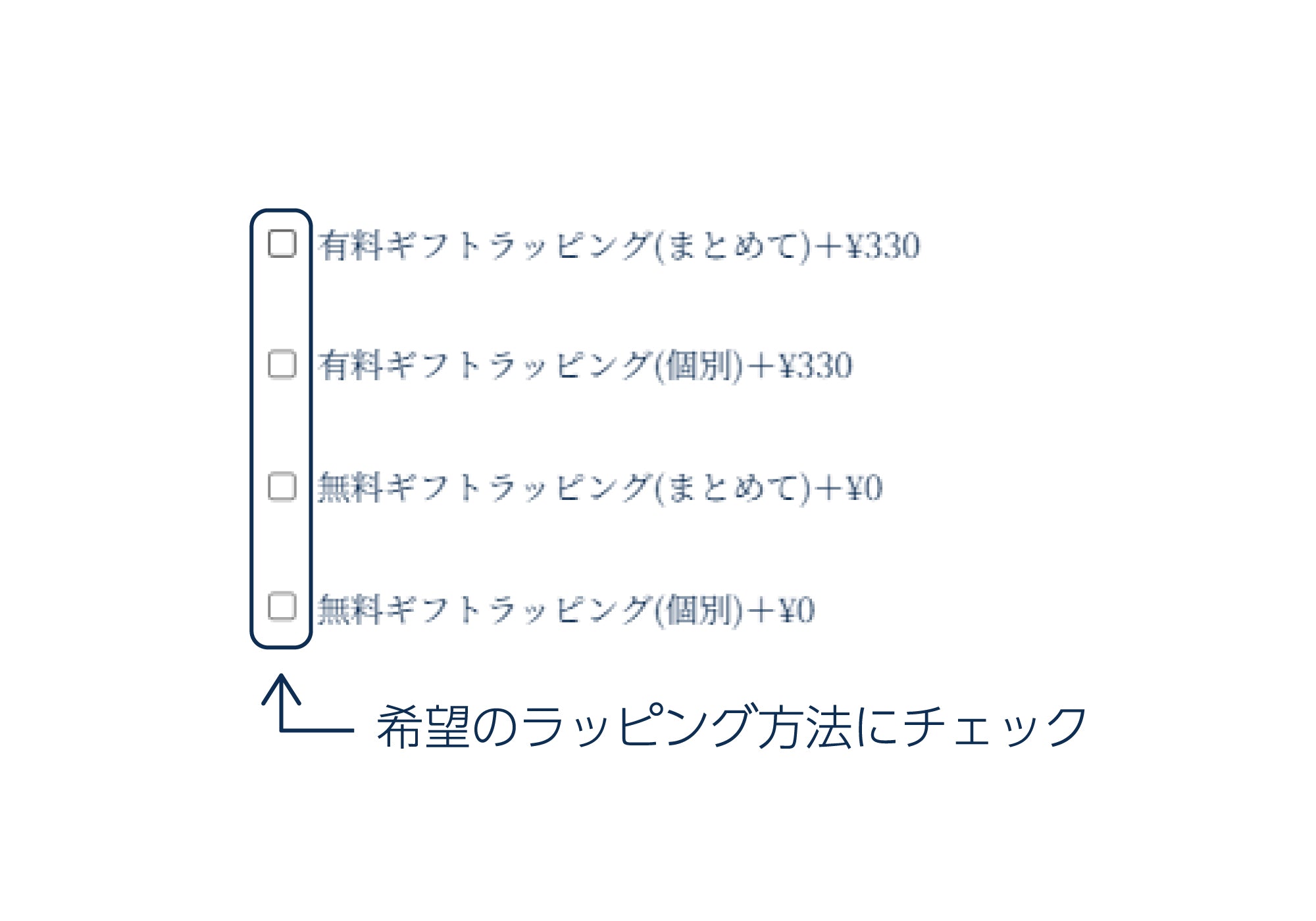 注:個別ラッピングをご希望の場合、ギフトラッピングをご希望の商品番号を下部のご入力欄にご記載ください。